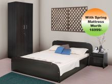 Offer Page: Kurlon Woodz Bedroom Set (Queen Size Bed With Mattress+Two Door Wardrobe+Side Table)