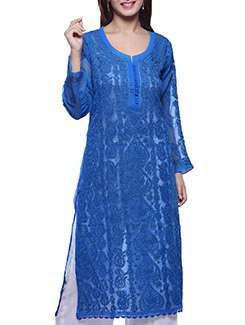 blue georgette straight kurti Rs. 2290.00 @ Limeroad