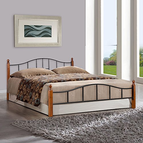 FurnitureKraft Kansas Metal Queen Size Double Bed with Wooden Leg