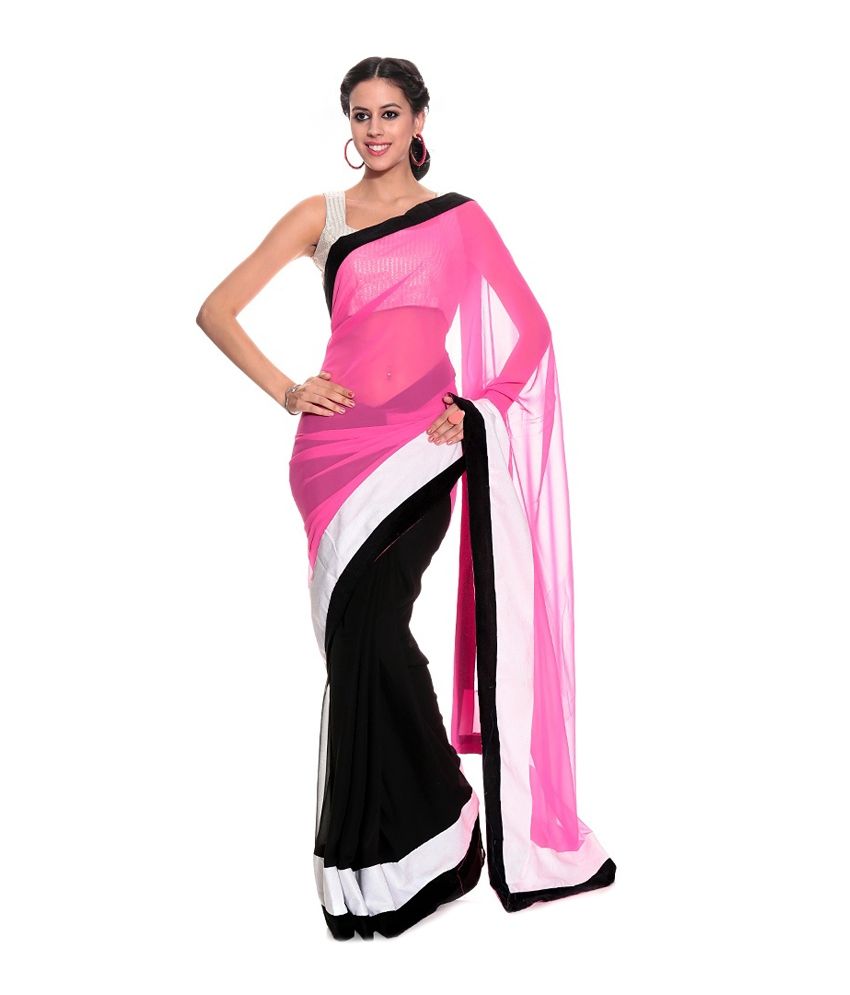 Goyal Silk Mills Pink Border Work Faux Georgette Saree With Blouse Piece @ Snapdeal