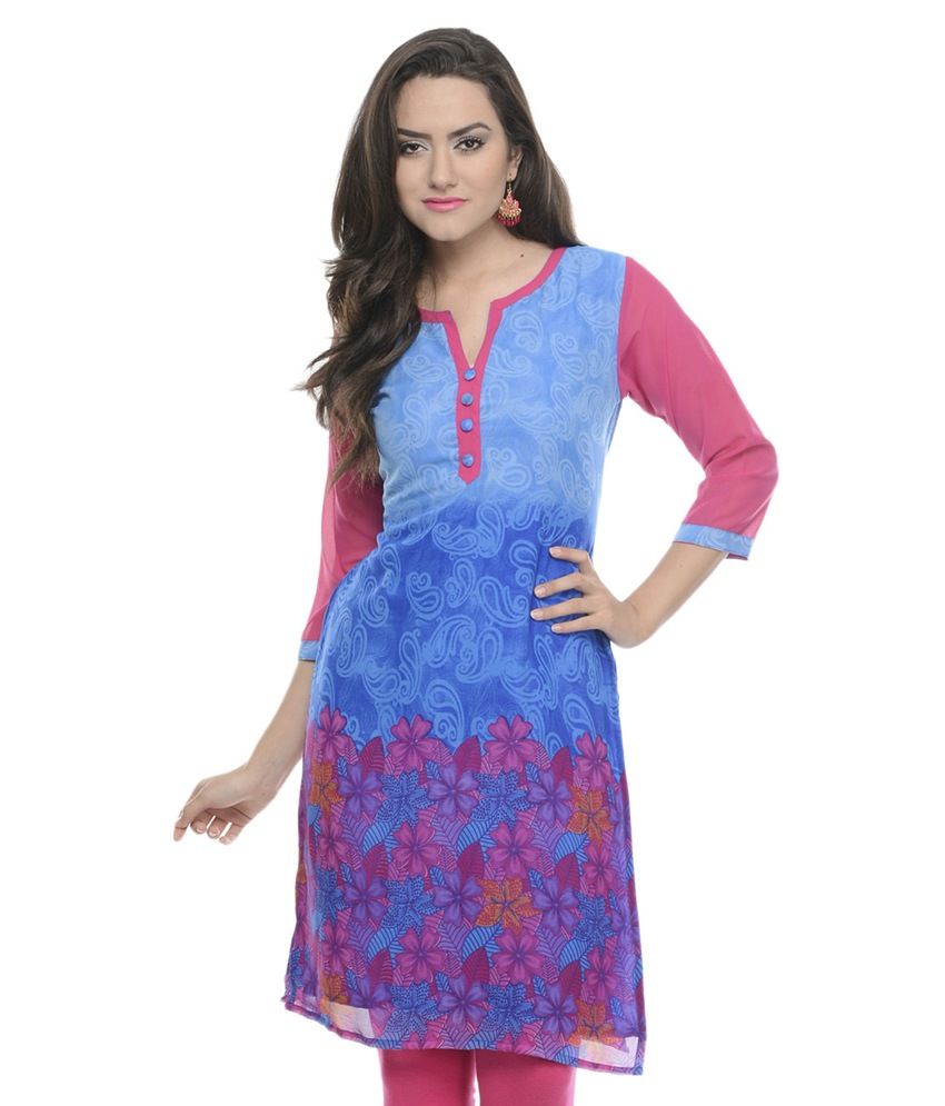 Jainish Blue Digital Printed Round Neck Georgette Kurti @ Snapdeal