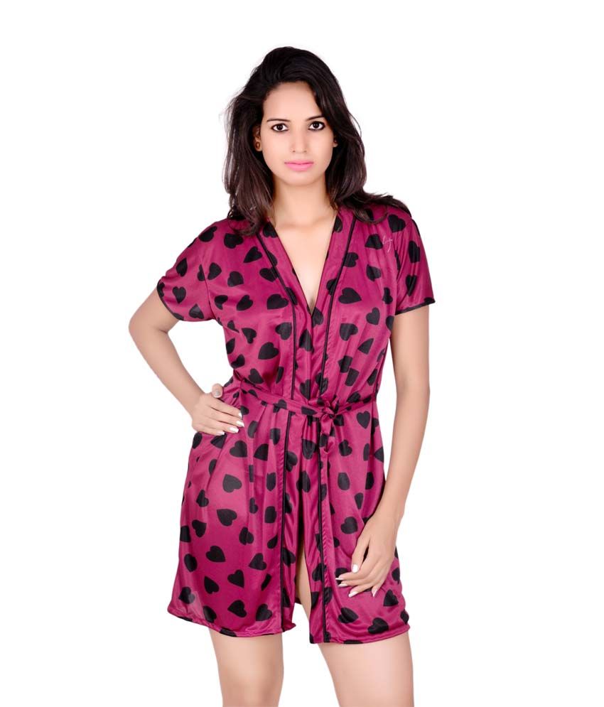 Kanika Maroon Satin Nighty @ Snapdeal