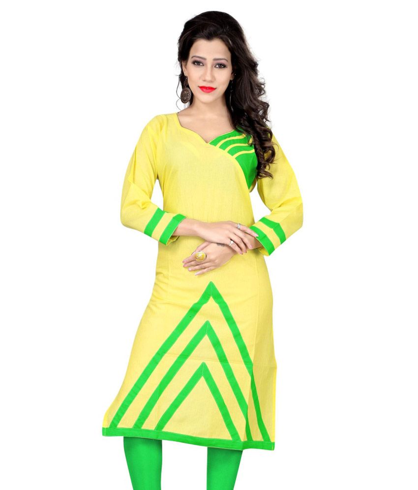 Kuki Fashion Yellow Cotton Kurti @ Snapdeal