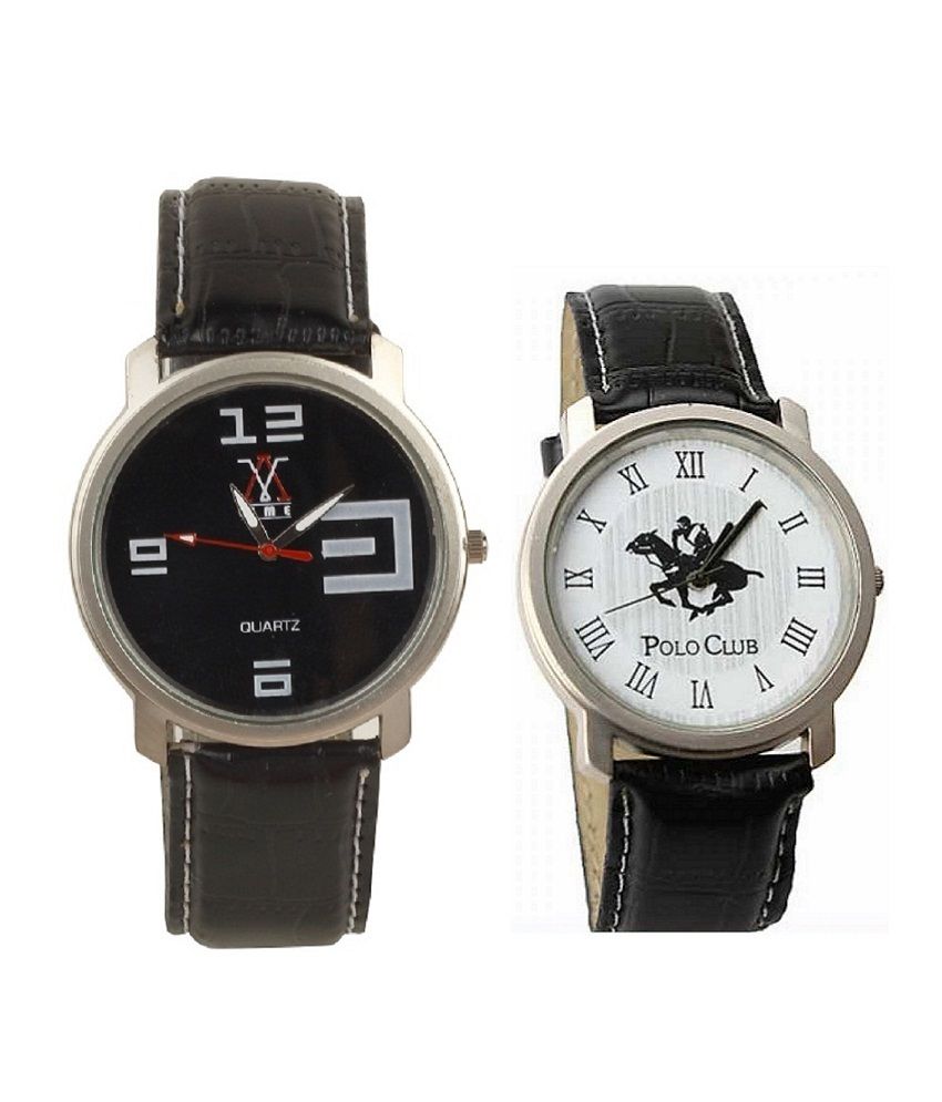Lime Black Leather Analog Couple Watches @ Snapdeal