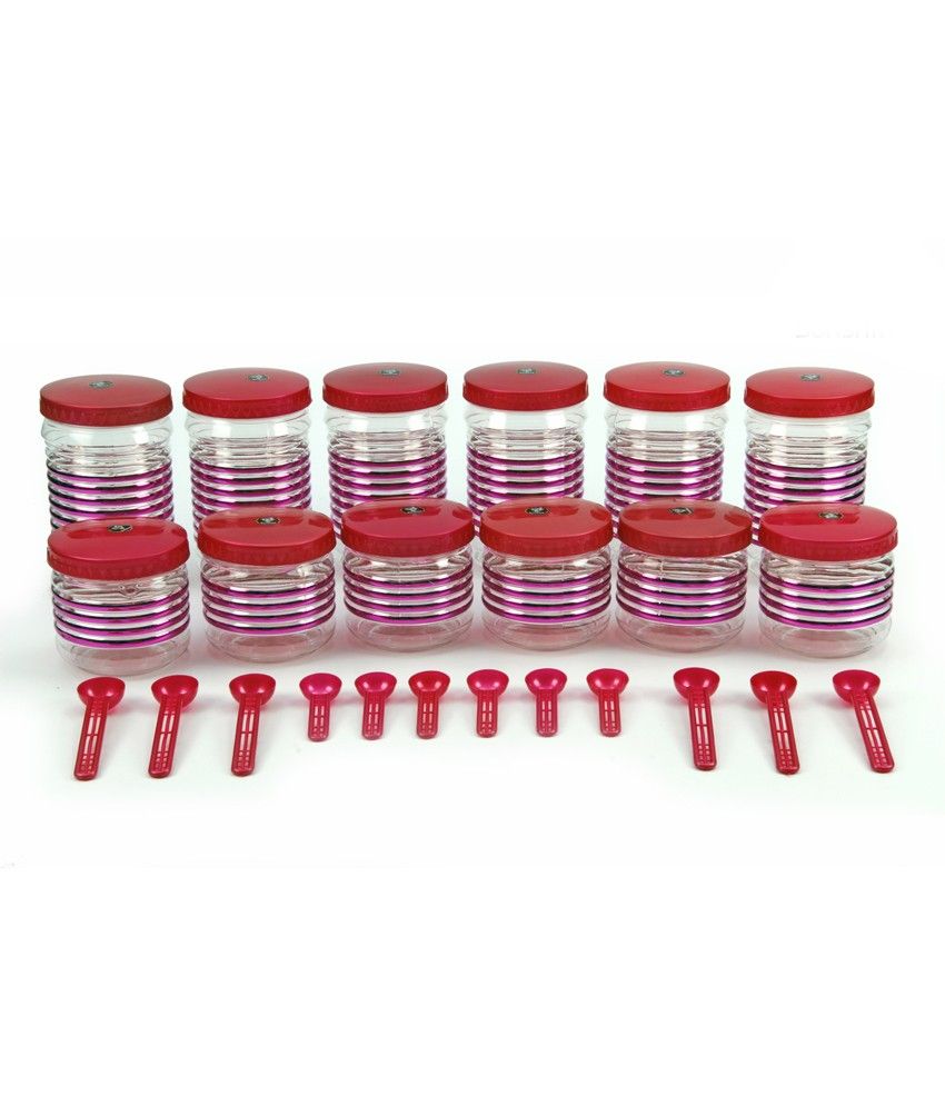 Brand : SUNSHINE Material : Virgin Plastic Colour : Pink Inclusive of : 6pc Crystal 500ml PET Container and 6pc Crystal 1000ml PET Container with 12pc Designer Spoon Other Features : 1. Ideal Container for shelf storage. 2 All Day Fresh 3. Odour Less 4. Leak Resistant