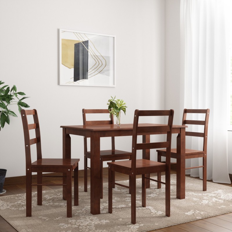 Woodness Winston Upholstered Solid Wood 4 Seater Dining Set (Finish Color - Mahogany)